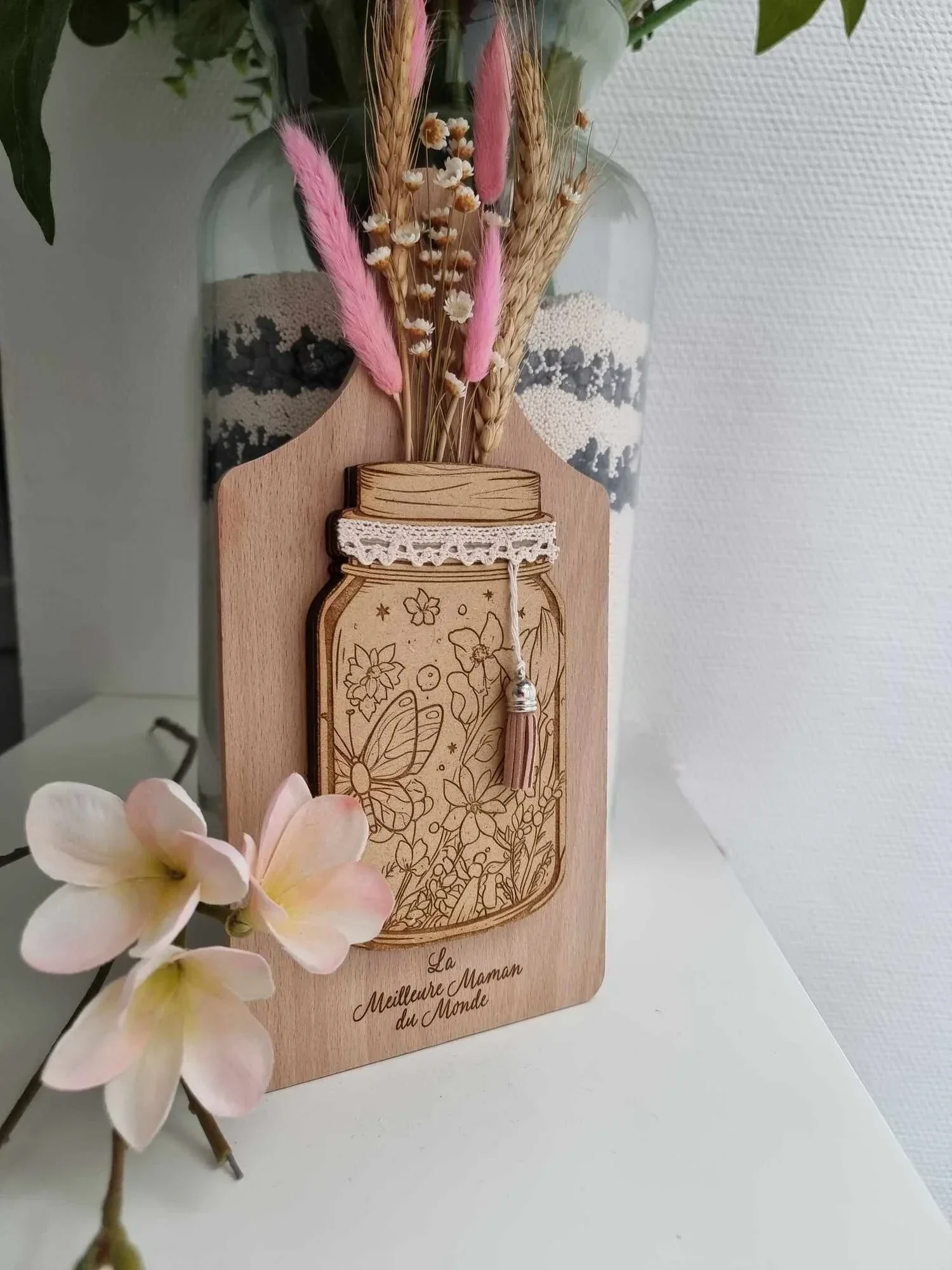 Dans un monde où la décoration intérieure prend une place prépondérante, une planche en bois ornée d'un pot de fleurs séchées et d'un texte personnalisé se démarque comme un élément unique et chaleureux. Ce type de décoration allie rusticité et originalité, apportant une touche naturelle à n'importe quel espace.