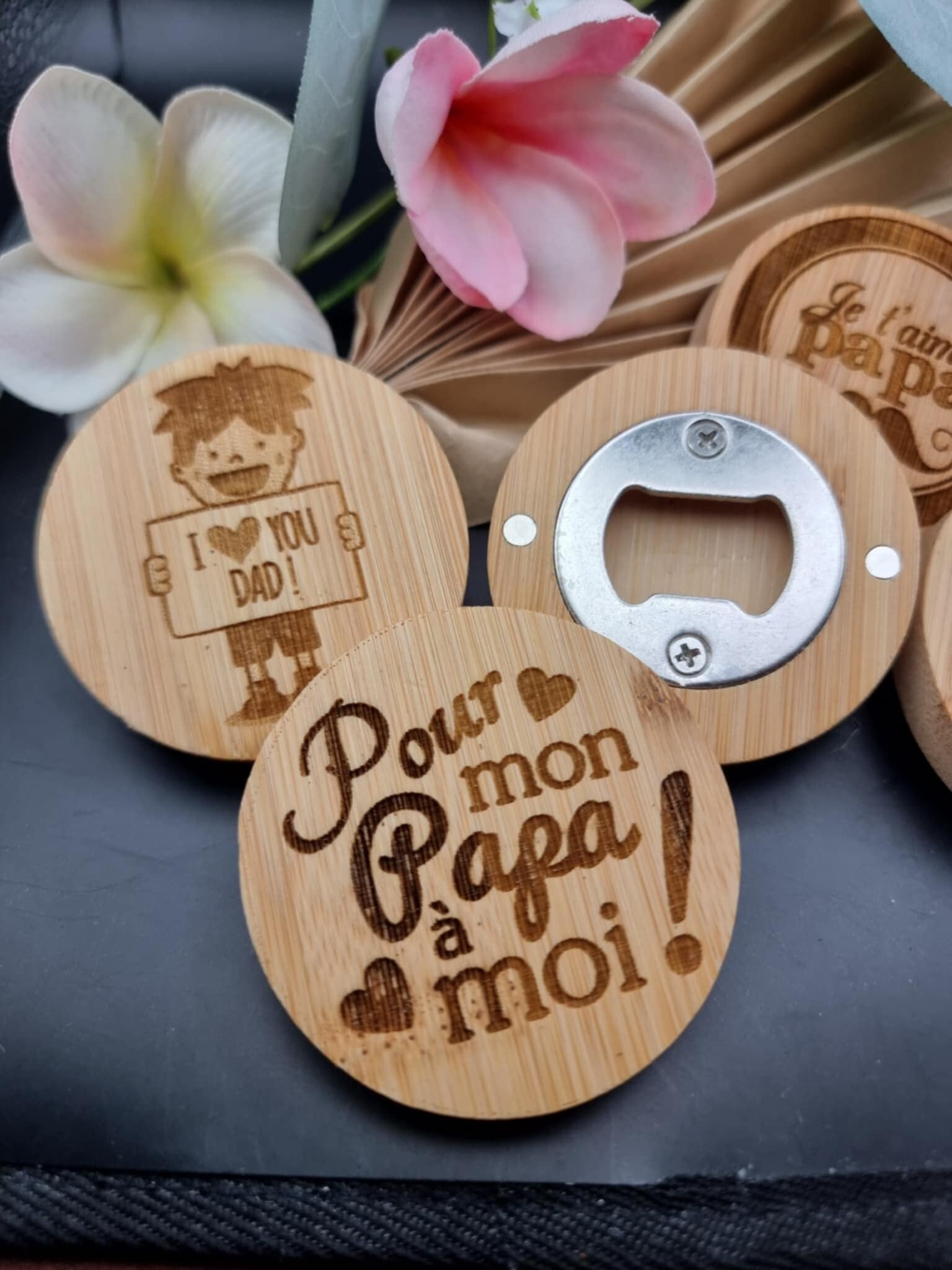 Cette année, pour la Fête des Pères, offrez à votre papa un cadeau qui allie praticité et personnalisation : notre ouvre-bouteille gravé sur mesure. Parfait pour ceux qui aiment partager un bon moment autour d’une bière ou d’un verre de vin, cet accessoire deviendra rapidement l'indispensable de ses soirées !