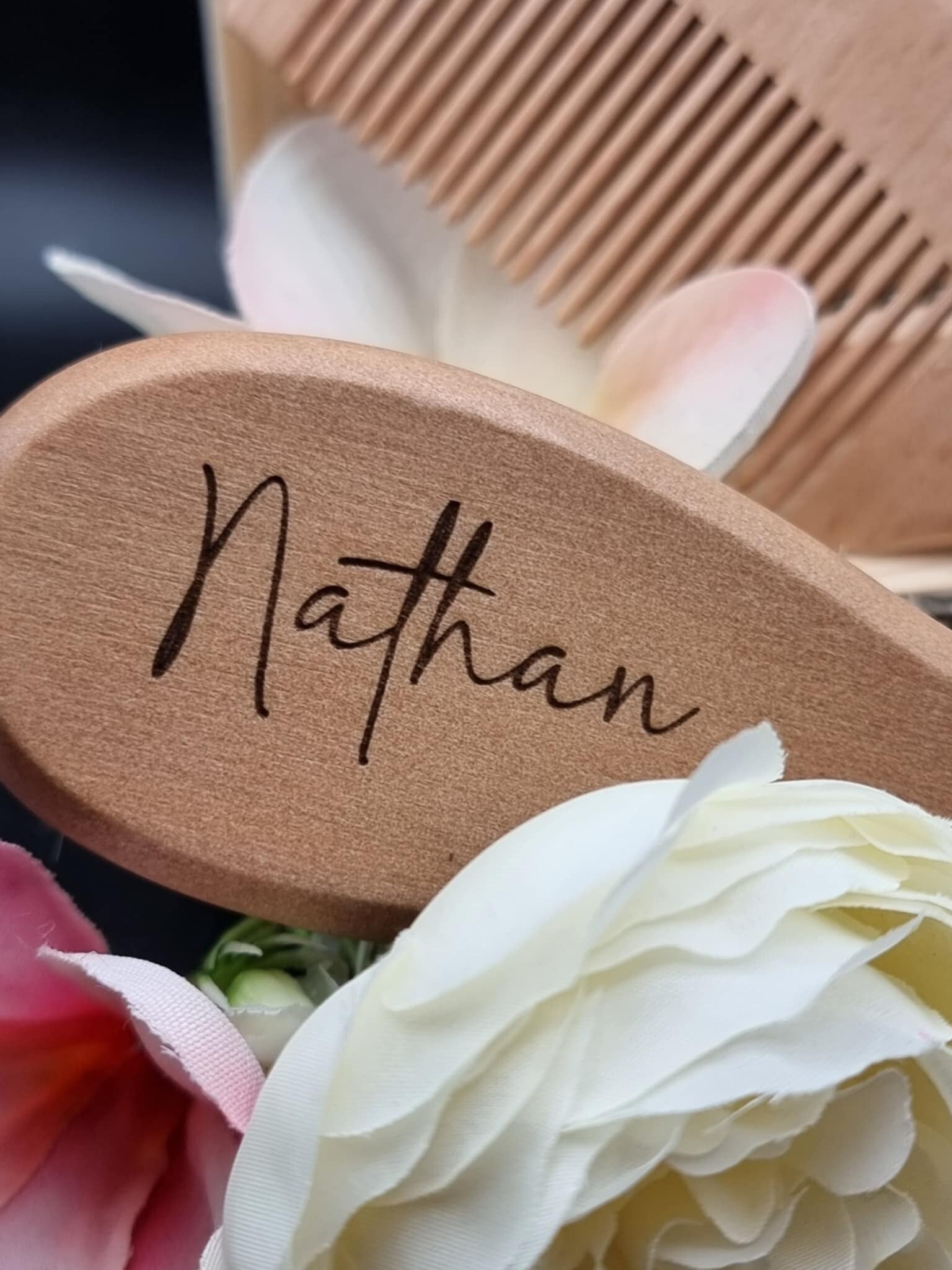 La possibilité de graver le prénom de l'enfant ou une date spéciale en fait un souvenir inestimable pour les parents. Ce cadeau est non seulement pratique, mais il devient également un trésor sentimental à chérir au fil des années. Offrir une brosse en bois à graver, c'est offrir un morceau d'amour et de tendresse, parfait pour célébrer l'arrivée d'un nouveau-né.