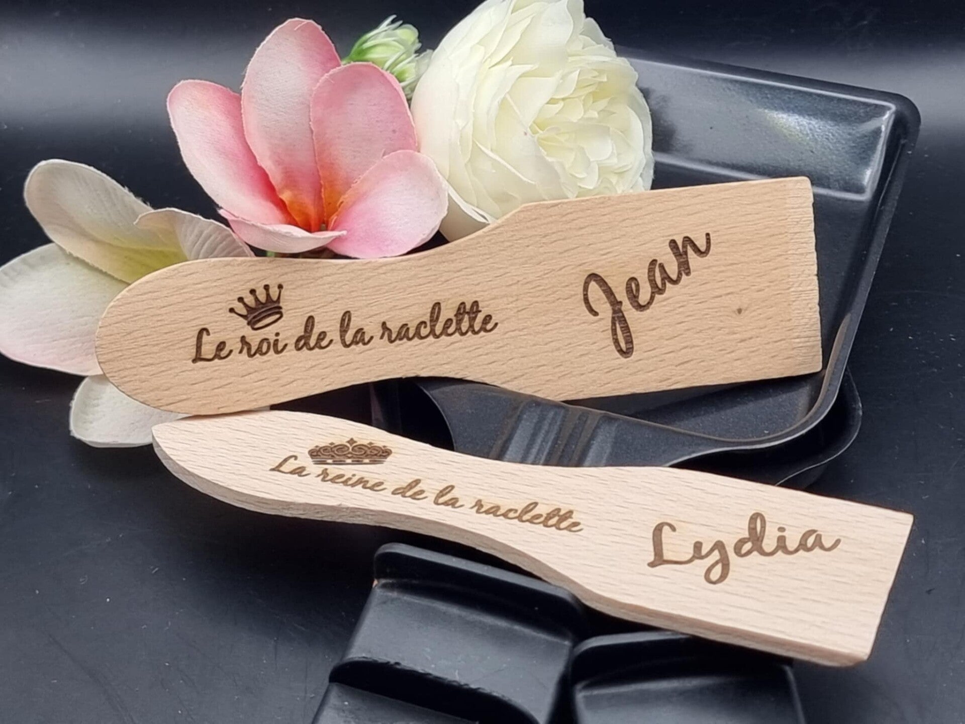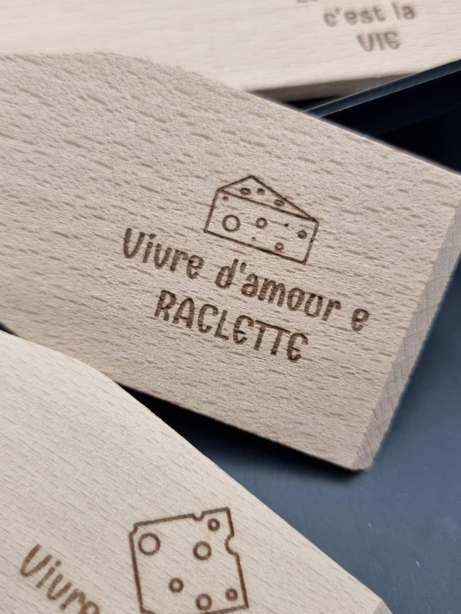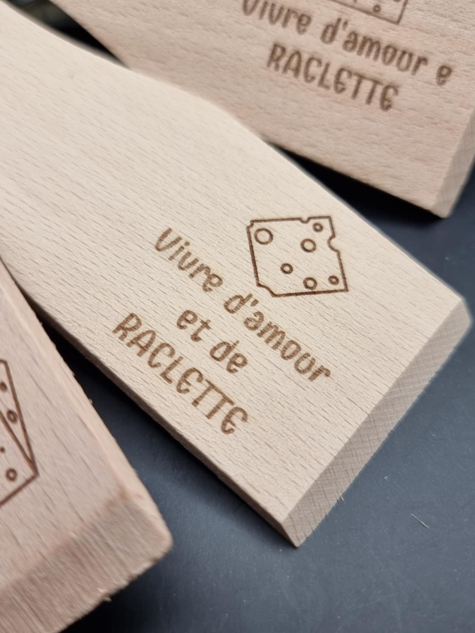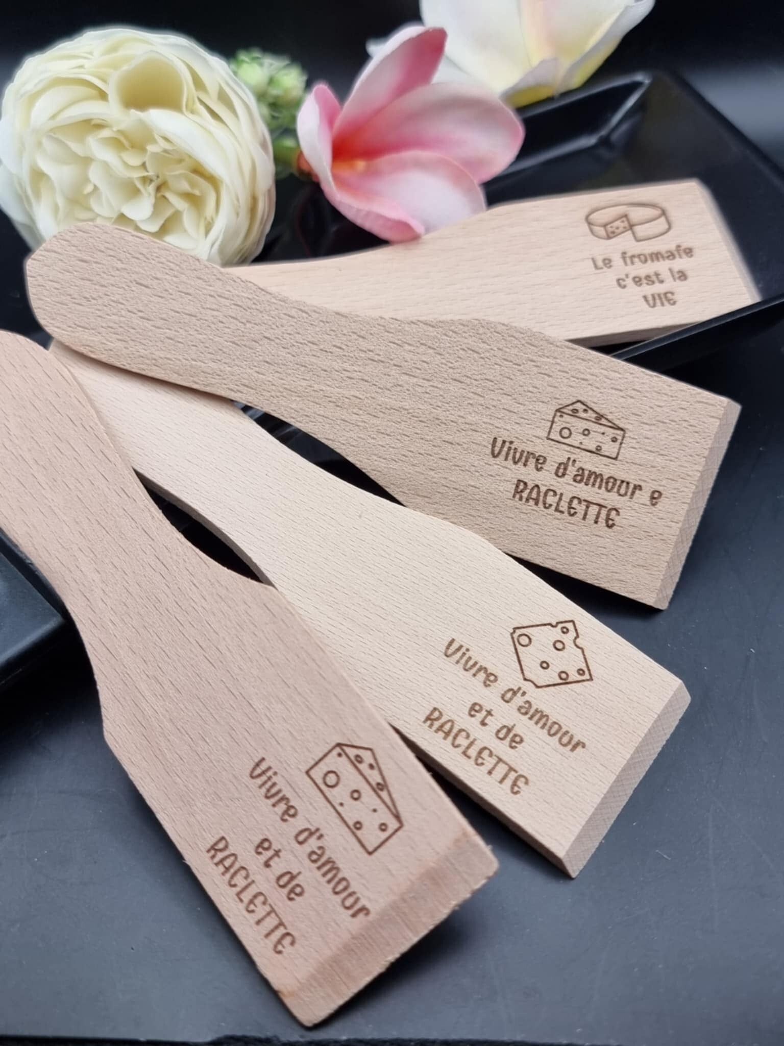 La spatule en bois pour raclette est un accessoire incontournable pour les amateurs de ce plat savoureux. Pour ajouter une touche personnelle à vos soirées raclette, optez pour une spatule personnalisée grâce à la gravure laser. Ce procédé permet de créer des designs uniques, que ce soit un prénom, une date ou un motif symbolique. Non seulement cela rend votre spatule unique, mais cela en fait également un excellent cadeau pour vos proches. Avec une spatule en bois gravée, vos moments de partage autour de la raclette seront encore plus mémorables.